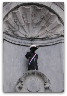 Afterwards I wanted to show them ‘Manneken Pis’, which is our most famous little statue in Brussels. It’s a little guy peeing 🙂 He used to be naked, but now he changes outfits several times a week. (There’s even a schedule that posts what’s he wearing or going to wear!)