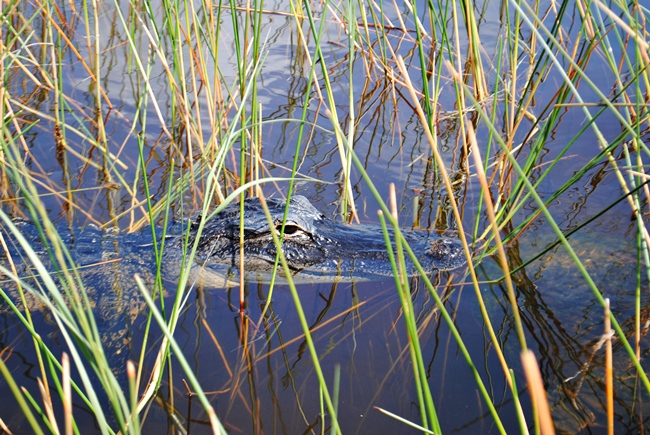 The boat swiftly maneuvers its way through the water. After a while our captain stops the boat as he has spotted an alligator. The gator slowly makes his way in the water, carefully taking in everything that is happening around him. It`s a strange feeling being so close to an alligator who can kill you in no time.