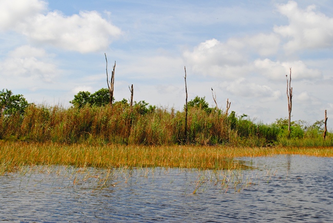 The sun is burning on my skin when I step aboard the airboat. It`s my first time on a swamp boat, which is a small open boat with shallow draft and a caged airplane propeller capable of traveling high speeds through shallow water. I put in my earplugs as it`s advised because of the engine noise.