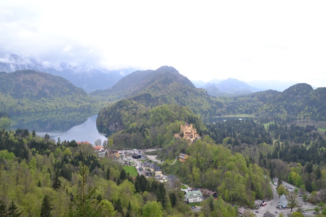 The view you have walking from the Marienbrücke to Neuschwanstein castle. You see Schlöss Hohenschwangau from a different point in a beautiful setting.