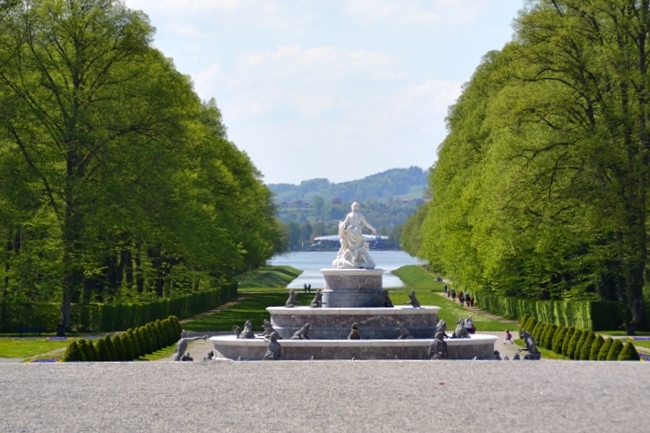 Herrenchiemsee is a complex of royal buildings on Herreninsel, which is an island in the Chiemsee next to Fraueninsel, a neighboring island. You can visit the island by taking a ferry from several locations. The New Palace was built as a tribute to Versailles and the largest of King Ludwig II famous castles. The gardens are filled with fountains, as you also see at Versailles.