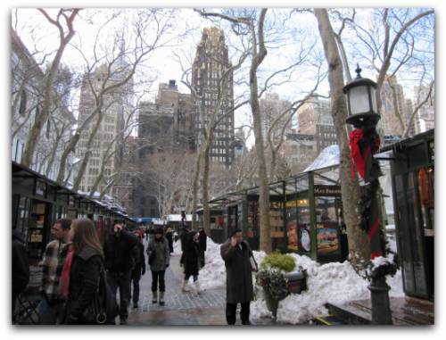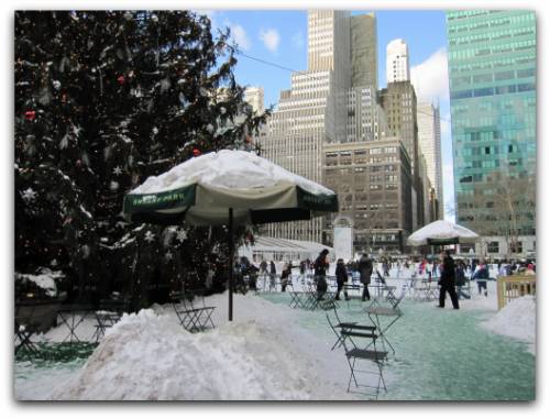 In Bryant Park you can find the annual Holiday shops and an ice skating rink where you can skate for free. (Info on hours)