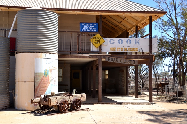 Self guided walk of Cook. Cook is a railway station on the standard gauge rail line from Port Augusta to Kalgoorlie with no inhabited places around. The town was established in 1917 when the railway was built and was named after the sixth Prime Minister of Australia, Joseph Cook. The town is on the longest stretch of straight railway in the world, at 478 kilometers from Ooldea to beyond Loongana. Cook is the only scheduled stop on the Nullarbor Plain for the Indian Pacific. The bush hospital is closed, the swimming pool is empty but Cook still has the ability to spark your curiosity.
