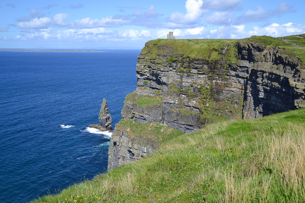 Probably one of the most famous attractions of Ireland are the Cliffs of Moher. The cliffs stretch over 8 kilometers (5 miles) along the Atlantic coast in County Clare. For a visit to the cliffs, you`ll pay a 6 euros* entrance (per adult). There`s a car park about 5 minutes from the Visitor Center. (An extra fee will be charged if you want to go up O`Brien`s Tower)