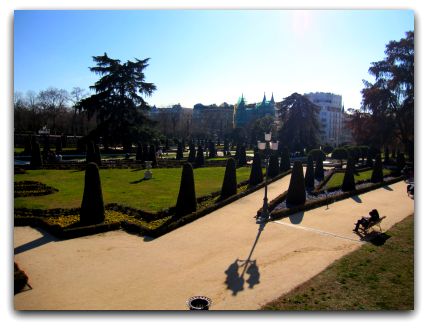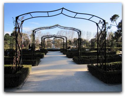 A lot of people who live in Madrid come here on Sundays with their families. Little children can ride their bikes or eat an ice cream. You can stroll through the beautiful “Rosaleda” (=Rose Garden). I went in March and unfortunately the roses weren`t blooming yet, but last year I went in May and that was the perfect time to see it`s full beauty.