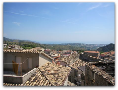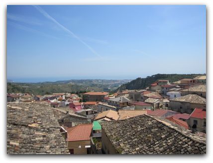 Satriano, is a little town in the hills. Because it`s high up, you have some stunning views from up here. Especially when you come out of the newly renovated church and look over the houses to see the ocean in the background.
