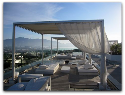What I loved most about this hotel was the tranquility that comes over you when entering the hotel. My room was spacious with a comfortable bed and a beautiful bathroom with rain shower, which was lovely! In the room there was soothing music playing in the background, completely relaxed, I enjoyed my stunning view from my room. Unfortunately I didn`t have the chance this time to experience any of the spa treatments, but I`m sure they are lovely, as the rest of the facilities were. The panoramic view from above, together with the cabanas & swimming pool can take you miles away in thoughts. No wonder Gwyneth Paltrow, Naomi Campbell and Kylie Minogue already checked out this place!