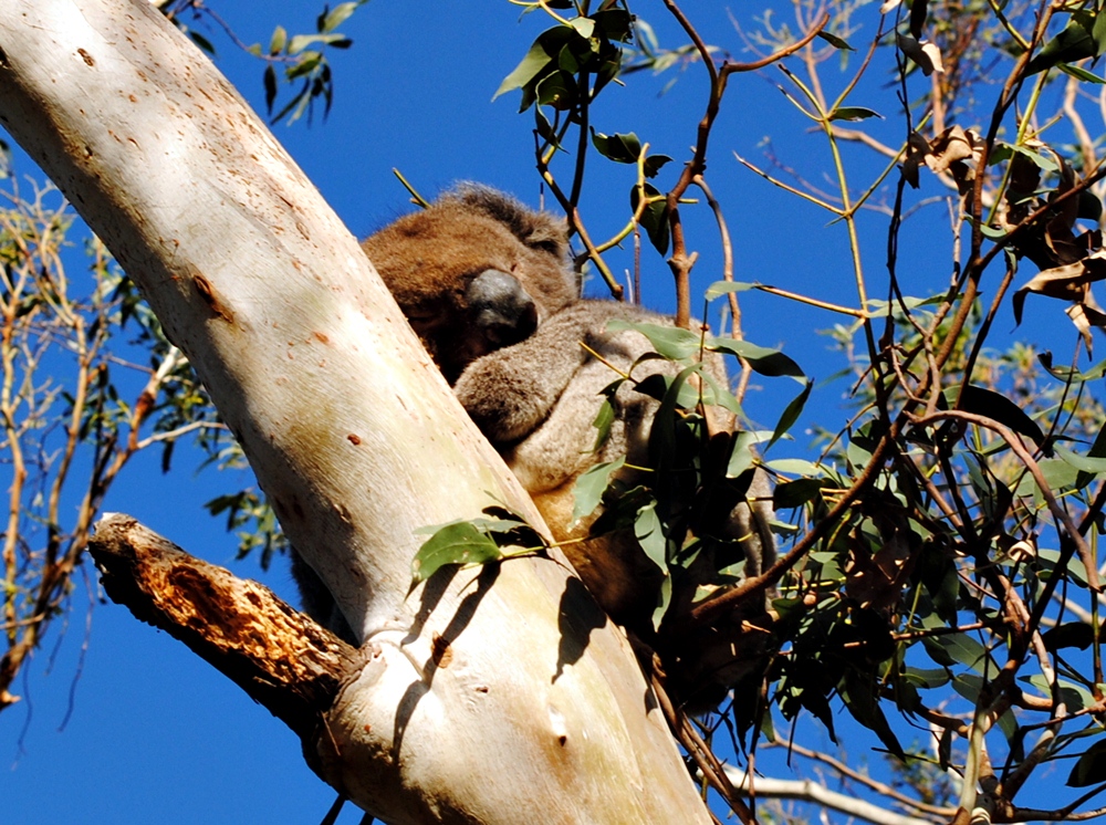 When driving from the Great Ocean Ecolodge to the Cape Otway Lighthouse, we saw a couple of koalas up in the trees. This cute koala was fast asleep as koalas rest motionless for about 16 to 18 hours a day, due to their low metabolic system. When not asleep it`s feeding himself with eucalypt leaves. You can find the koala in coastal regions of eastern and southern Australia, but is not found in Tasmania, the Northern Territory or Western Australia.