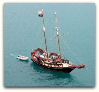 The trip with the Bones is a trip where you can relax aboard the sailing schooner “Bones” that takes you to Christmas Cove and the Honeymoon Coves where you can swim, snorkel and relax.