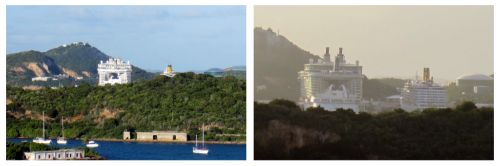If you look closely, you can see another ship next to it. Yes, the small (!) one, which is a cruise ship from Costa that had over 2000 passengers aboard, but is nothing in comparison to the Oasis.