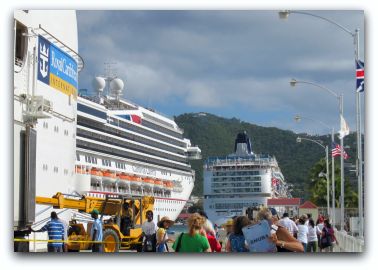 You know what that meant, a lot of people walking around St Thomas! The ships were lined up at the port. When a ship from Carnival arrived it literally parked the boat in between RCC and the Norwegian one, just like you do with cars!
