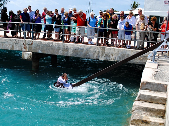 This must have been the strangest event I`ve witnessed on my travels. In the old days they used a ducking stool to punish nagging wives and this is demonstrated at the town square. Yep, the woman got ducked into the water several times!