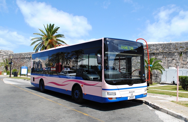 To get around on the island of Bermuda, the pink buses are an easy way of transportation. Do keep in mind when stepping aboard the bus, you need either a bus pass or the exact amount of money (coins, no bills are accepted!).