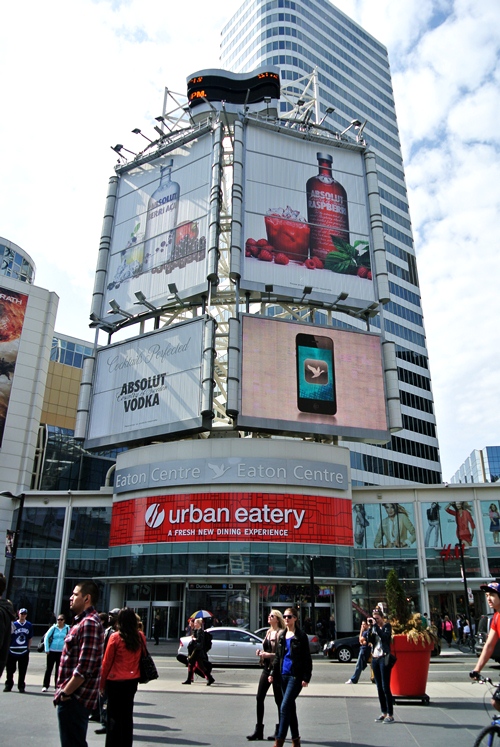 Toronto has its own little Times Square. A commercial junction and public square, situated at the southeast corner of the intersection of Yonge Street and Dundas Street East in Downtown Toronto.