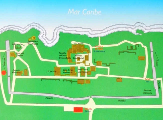 The ruins are next to the beach, white powder sand and blue-green water greet you. The different shades of blue remind me of the gorgeous colors I saw in Bermuda.