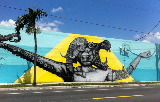 The Wynwood Art District, once a former garment district, now a neighborhood where the walls are being used as canvases for artists to show off their talent. It sounds a bit like a reversed world, where once graffiti was the thing to keep tourists away in an area, is now the major attraction.